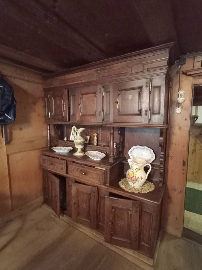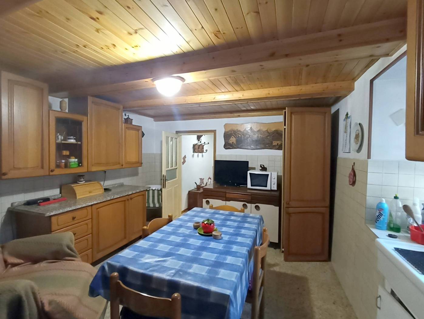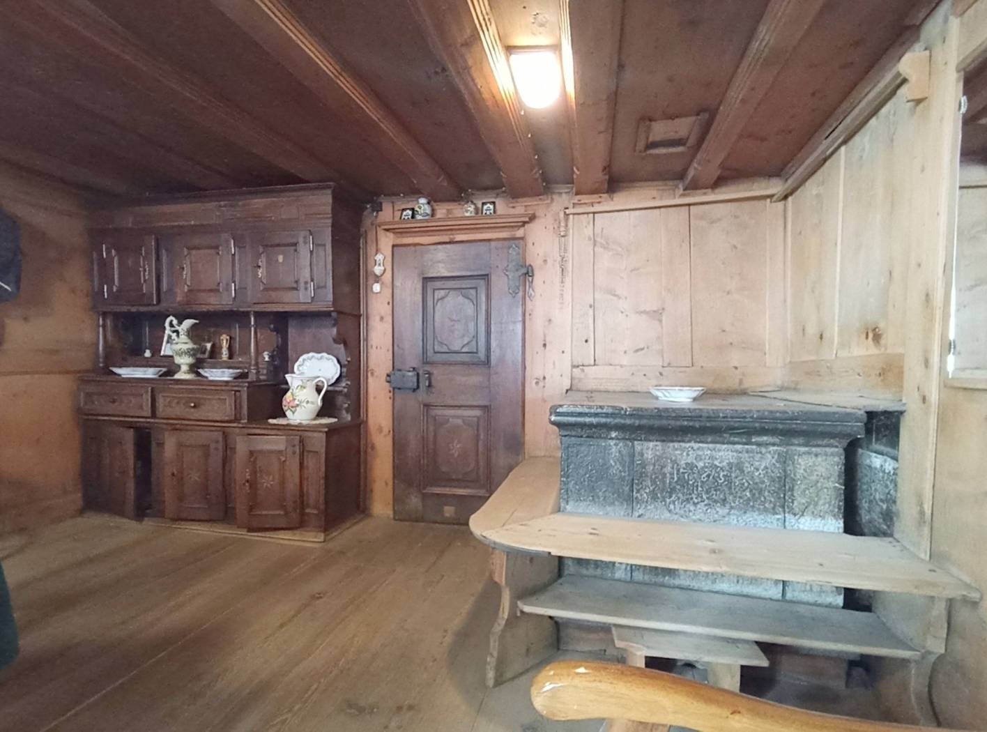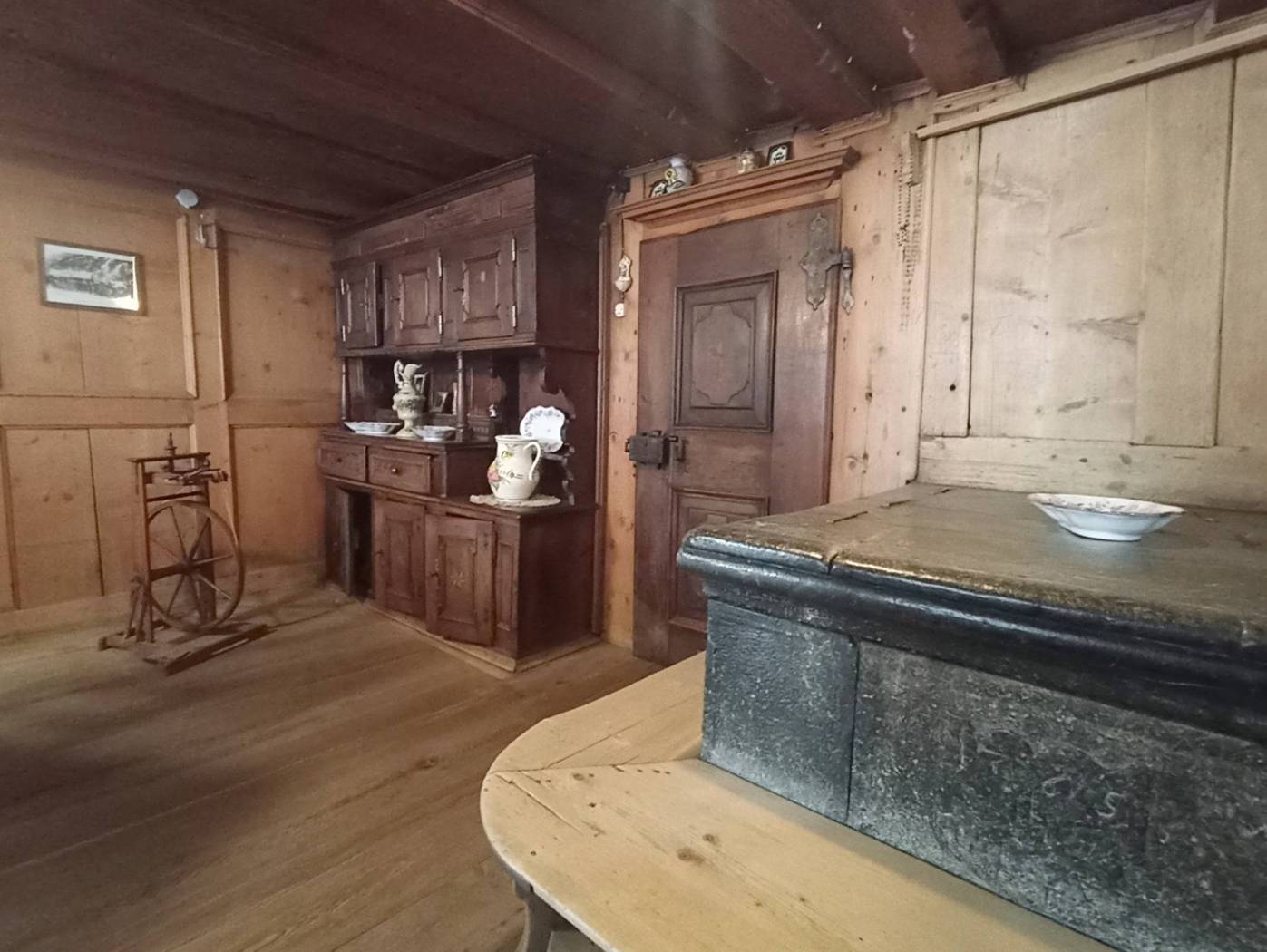Al piano terra, dietro un massiccio portone, troviamo un'ampia cantina. Al primo piano raggiungibile con l'aggiunta "moderna" di una scala coperta, troviamo un disimpegno, la cucina ed il nucleo centrale della casa : la "stube" , tradizionalmente unico locale riscaldato, con pareti rivestite da pannelli di legno e fornetto (stufa in pietra ollare), cuore della vita quotidiana nei lunghi mesi invernali. Al secondo piano attraverso un delizioso disimpegno raggiungiamo le due grandi camere da letto (tutto rigorosamente originale) , il bagno e , con una breve rampa di scale un ampio locale nel sottotetto. il riscaldamento è fornito da stufe a legna e fornetto della stube. La proprietà comprende una casetta, anch'essa in legno , con basamento e tetto in sasso, a pochi metri dalla casa ed adibita a legnaia/magazzino