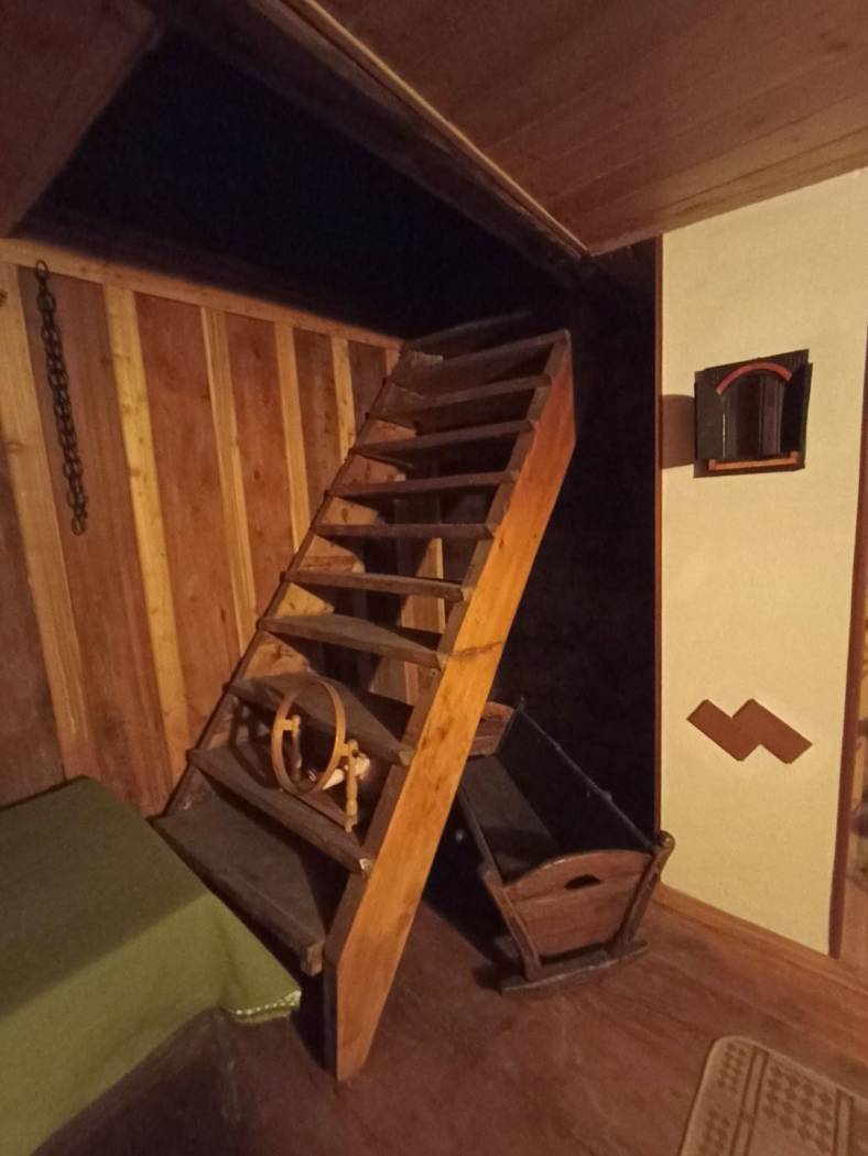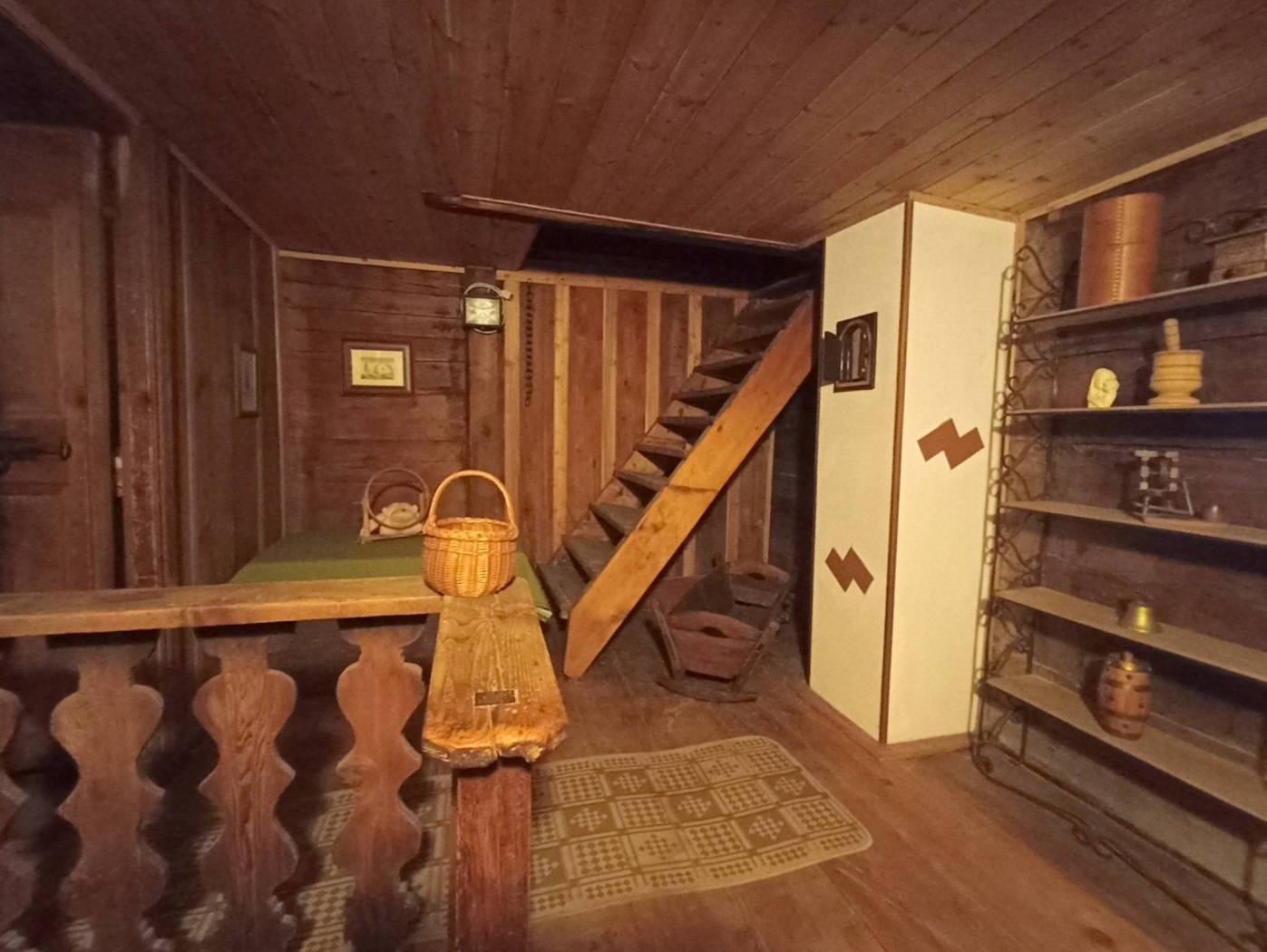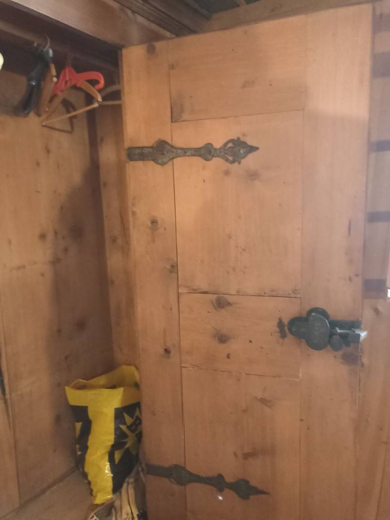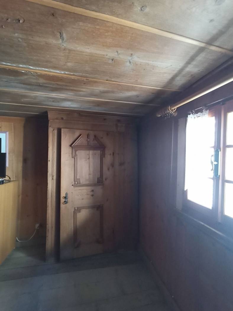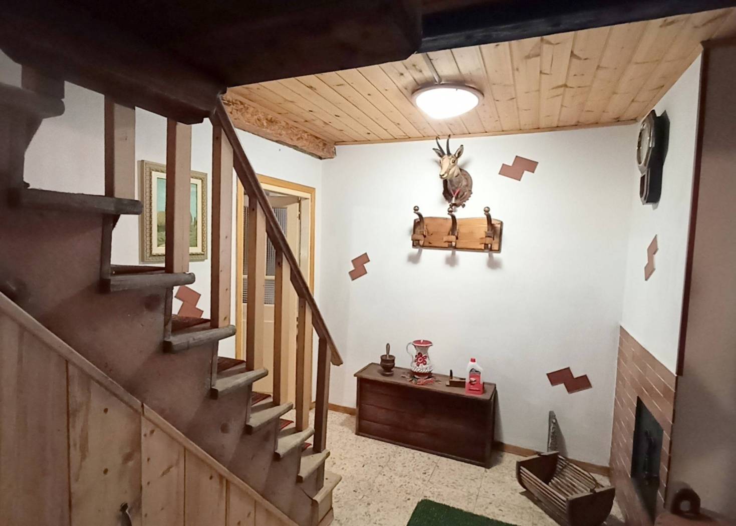 Al piano terra, dietro un massiccio portone, troviamo un'ampia cantina. Al primo piano raggiungibile con l'aggiunta "moderna" di una scala coperta, troviamo un disimpegno, la cucina ed il nucleo centrale della casa : la "stube" , tradizionalmente unico locale riscaldato, con pareti rivestite da pannelli di legno e fornetto (stufa in pietra ollare), cuore della vita quotidiana nei lunghi mesi invernali. Al secondo piano attraverso un delizioso disimpegno raggiungiamo le due grandi camere da letto (tutto rigorosamente originale) , il bagno e , con una breve rampa di scale un ampio locale nel sottotetto. il riscaldamento è fornito da stufe a legna e fornetto della stube. La proprietà comprende una casetta, anch'essa in legno , con basamento e tetto in sasso, a pochi metri dalla casa ed adibita a legnaia/magazzino